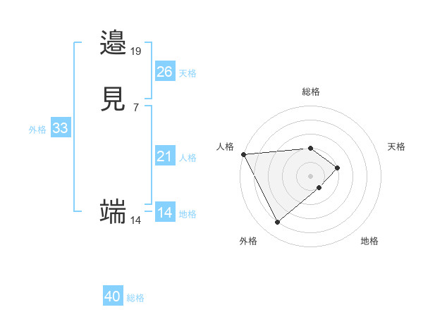 邉見 端さんの地格は14画の1点!