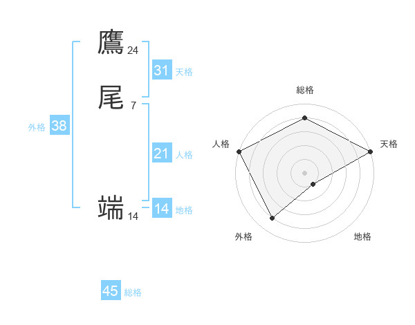 鷹尾 端さんを姓名の画数から五運を鑑定
