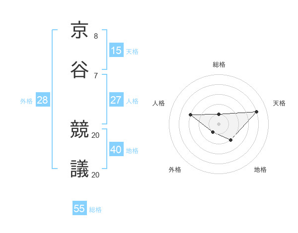 京谷 競議さんの天格は15画の4点!