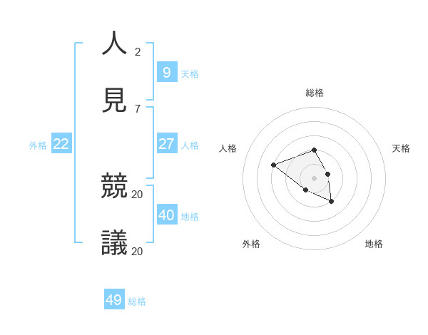 人見 競議さんの総格は49画の2点!