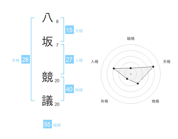 八坂 競議さんの総格は55画の1点!