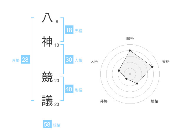 八神 競議さんの総格は58画の4点!