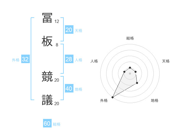 冨板 競議さんの外格は32画の5点!