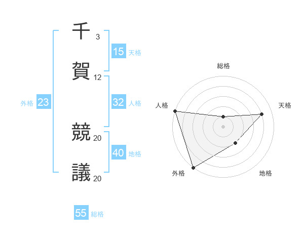 千賀 競議さんの総格は55画の1点!