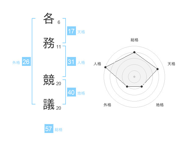 各務 競議さんの総格は57画の4点!