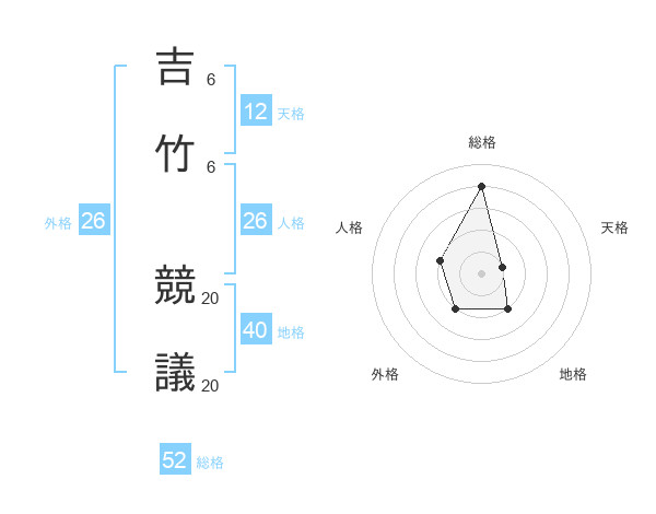 吉竹 競議さんを姓名の画数から五運を鑑定