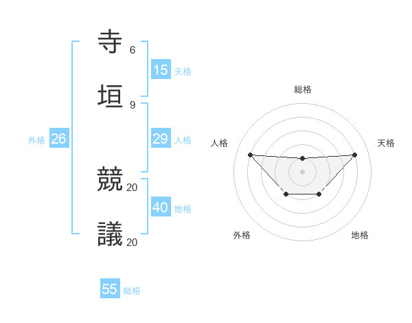 寺垣 競議さんの総格は55画の1点!