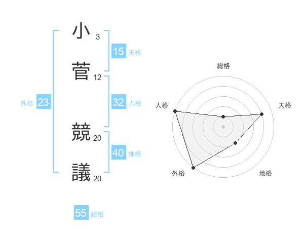 小菅 競議さんの総格は55画の1点!