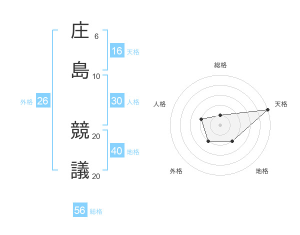 庄島 競議さんの天格は16画の5点!