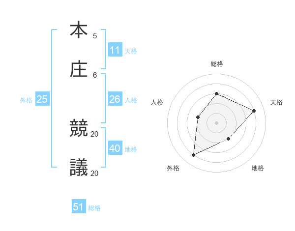本庄 競議さんの総格は51画の3点!