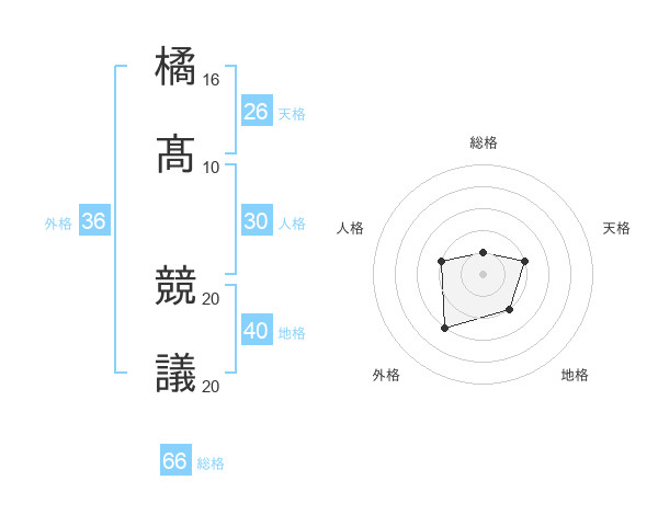 橘髙 競議さんを姓名の画数から五運を鑑定