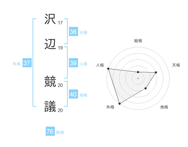 沢辺 競議さんの総格は76画の1点!