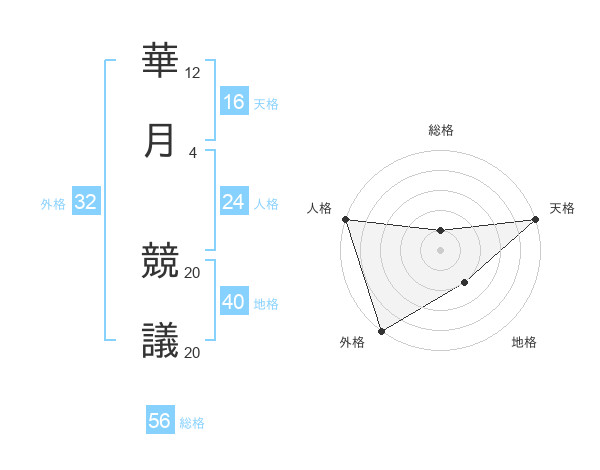 華月 競議さんの総格は56画の1点!