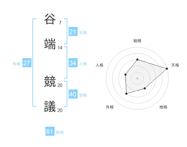 谷端 競議さんの天格は21画の5点!