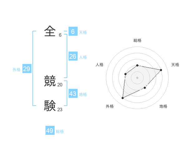 全 競験さんの総格は49画の2点!