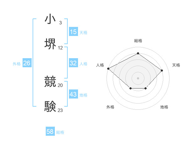 小堺 競験さんの総格は58画の4点!