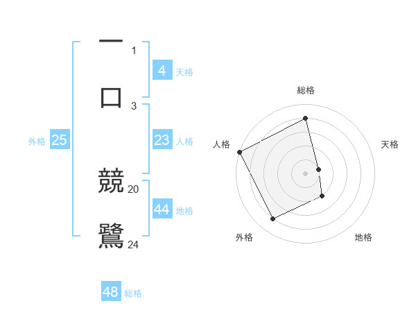 一口 競鷺さんを姓名の画数から五運を鑑定