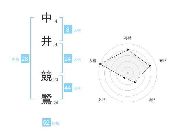 中井 競鷺さんの総格は52画の4点!