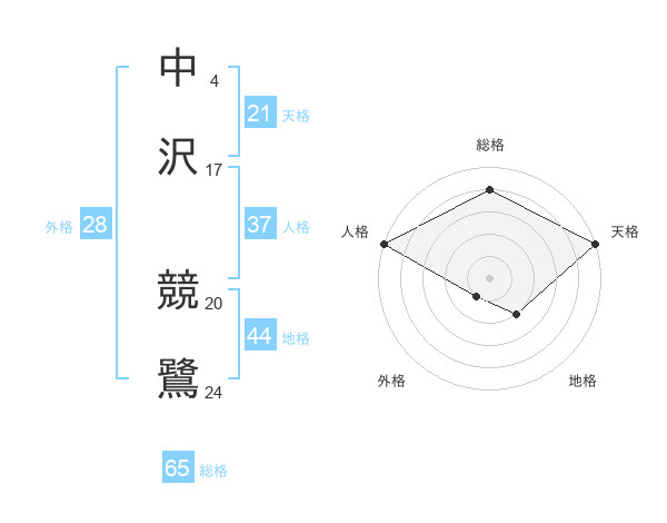 中沢 競鷺さんの総格は65画の4点!