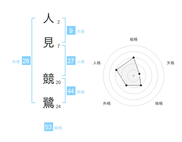 人見 競鷺さんを姓名の画数から五運を鑑定