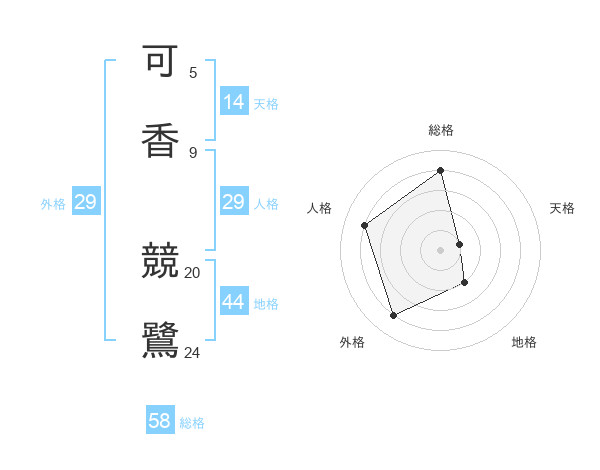 可香 競鷺さんの総格は58画の4点!