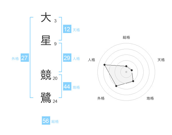 大星 競鷺さんの総格は56画の1点!