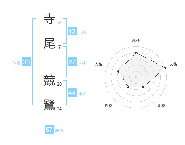 寺尾 競鷺さんを姓名の画数から五運を鑑定