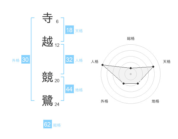寺越 競鷺さんを姓名の画数から五運を鑑定