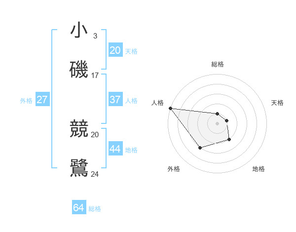 小磯 競鷺さんの人格は37画の5点!