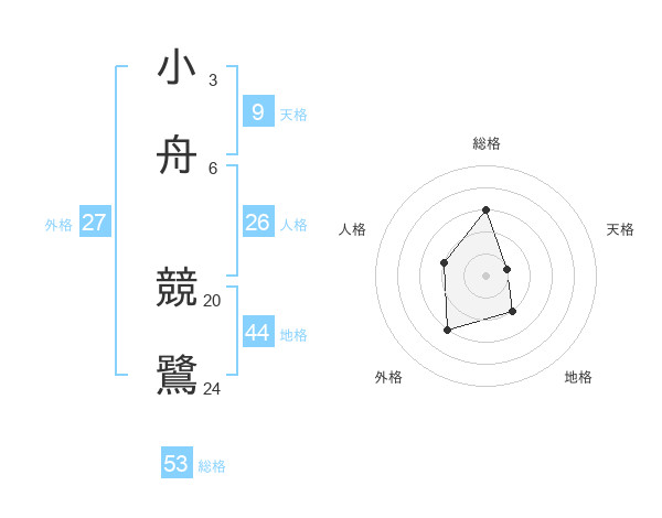 小舟 競鷺さんの総格は53画の3点!