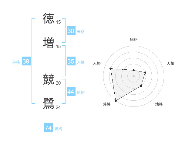 徳増 競鷺さんの総格は74画の1点!
