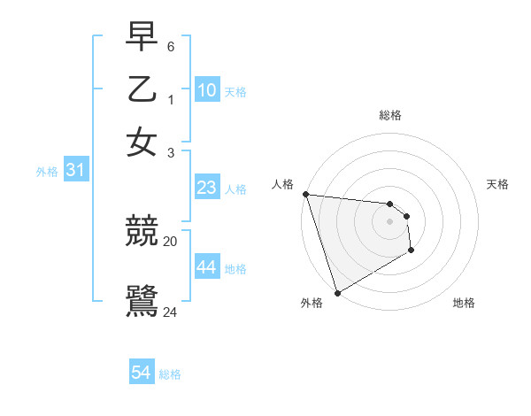 早乙女 競鷺さんを姓名の画数から五運を鑑定