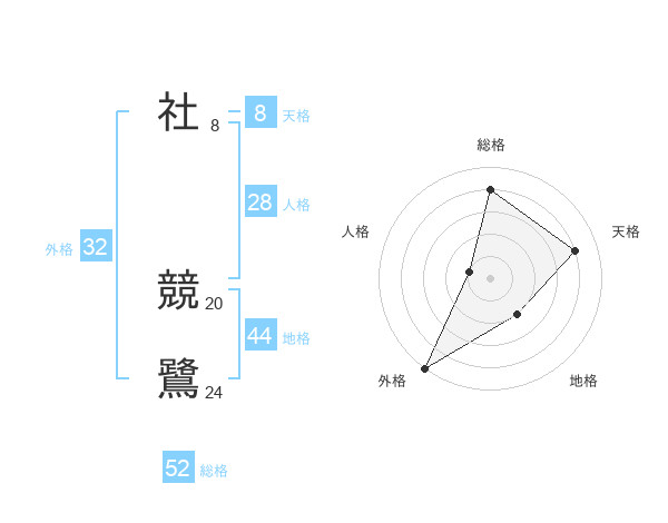 社 競鷺さんの総格は52画の4点!