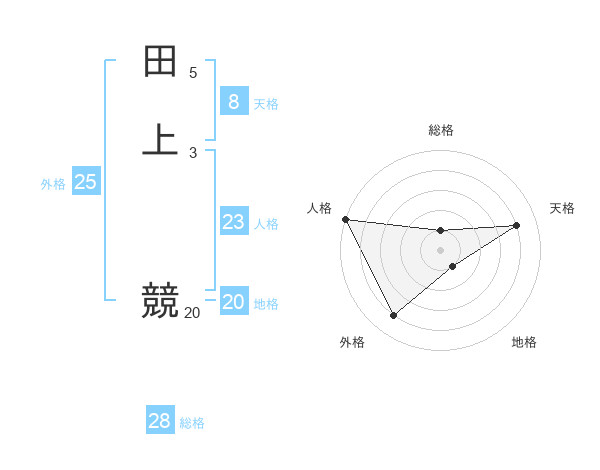 田上 競さんの総格は28画の1点!