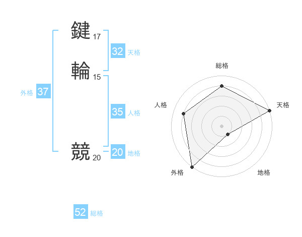 鍵輪 競さんの総格は52画の4点!