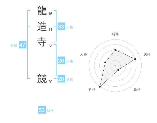 龍造寺 競さんの総格は53画の3点!