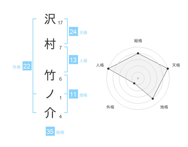 沢村 竹ノ介さんを姓名の画数から五運を鑑定