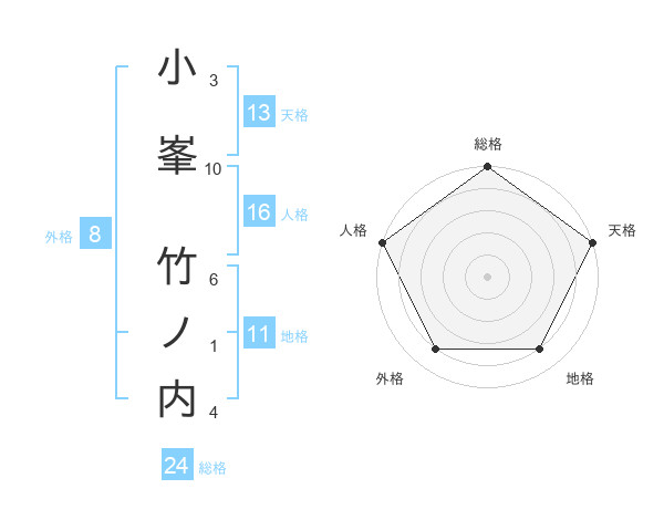 小峯 竹ノ内さんを姓名の画数から五運を鑑定