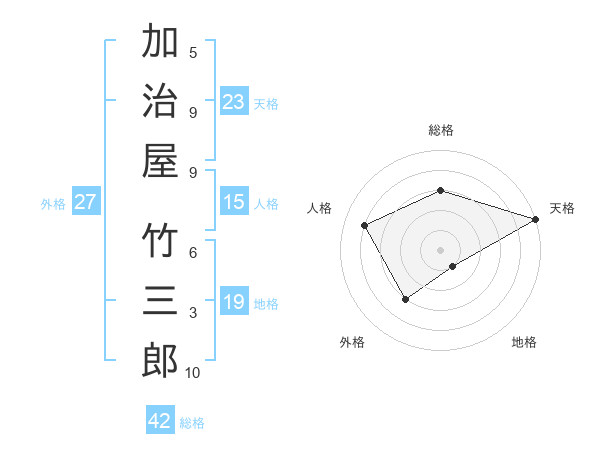 加治屋 竹三郎さんを姓名の画数から五運を鑑定