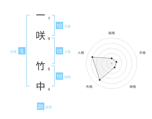一咲 竹中さんを姓名の画数から五運を鑑定