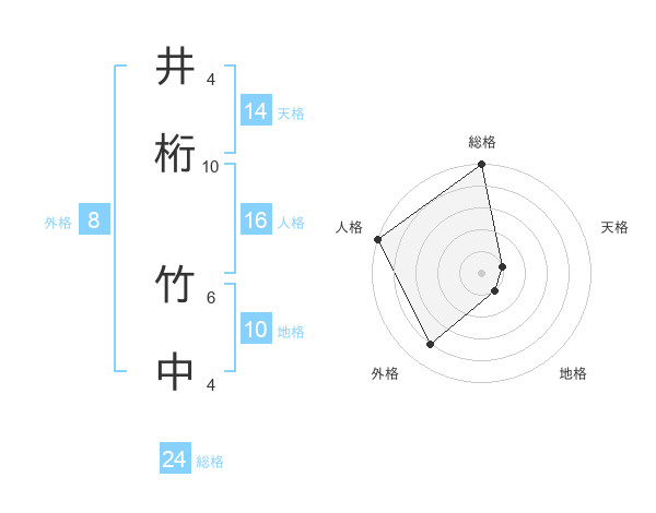 井桁 竹中さんの総格は24画の5点!