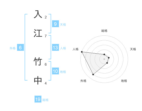入江 竹中さんの総格は19画の1点!