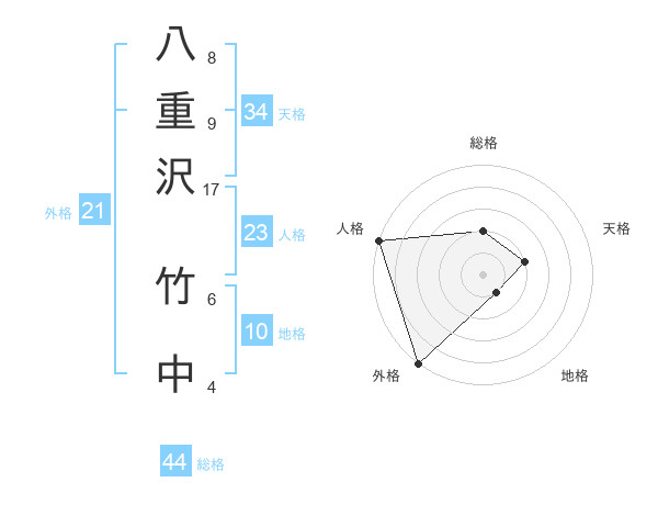 八重沢 竹中さんの総格は44画の2点!