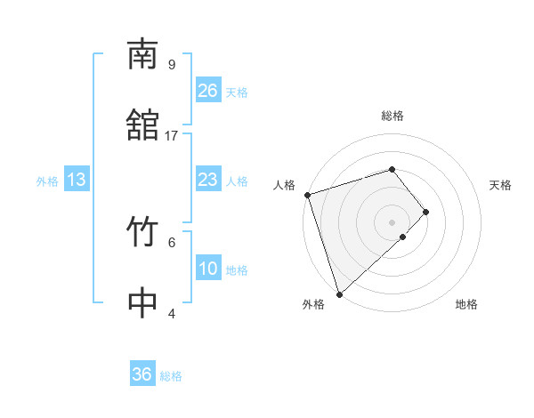 南舘 竹中さんを姓名の画数から五運を鑑定