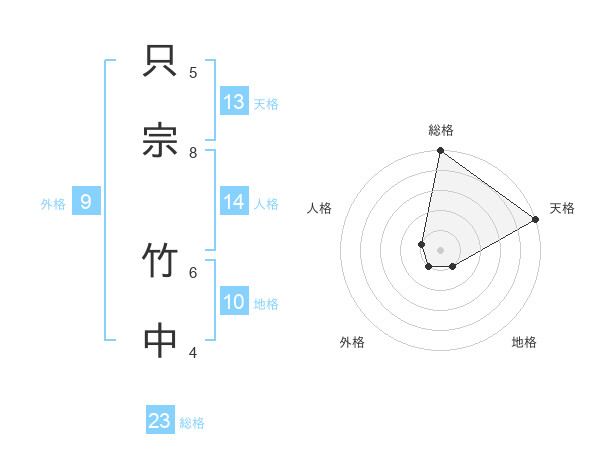 只宗 竹中さんの総格は23画の5点!