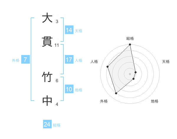 大貫 竹中さんの人格は17画の4点!