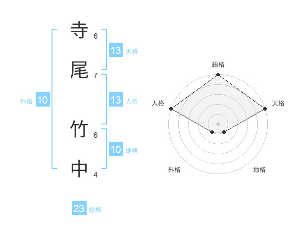 寺尾 竹中さんの天格は13画の5点!