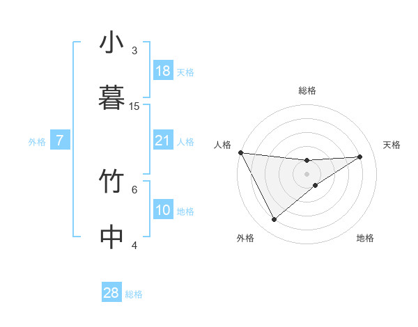 小暮 竹中さんの天格は18画の4点!