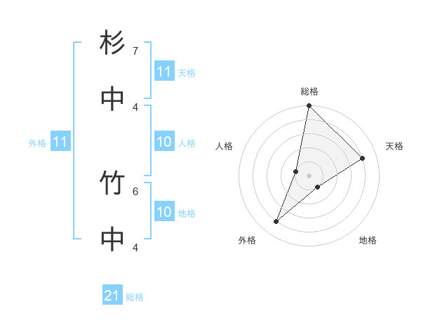 杉中 竹中さんを姓名の画数から五運を鑑定