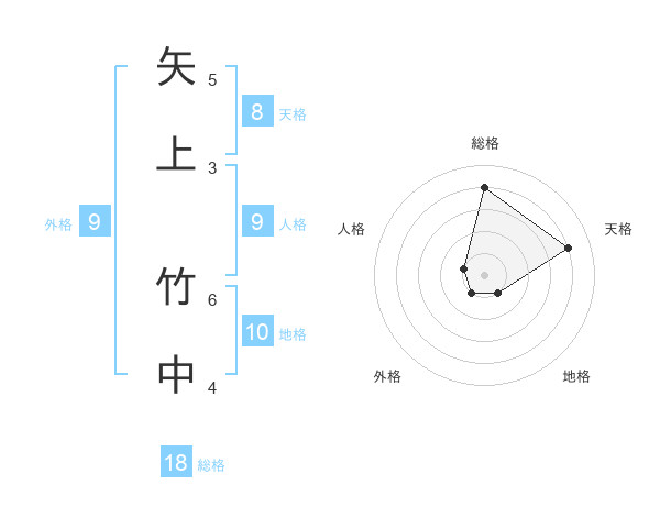 矢上 竹中さんの総格は18画の4点!